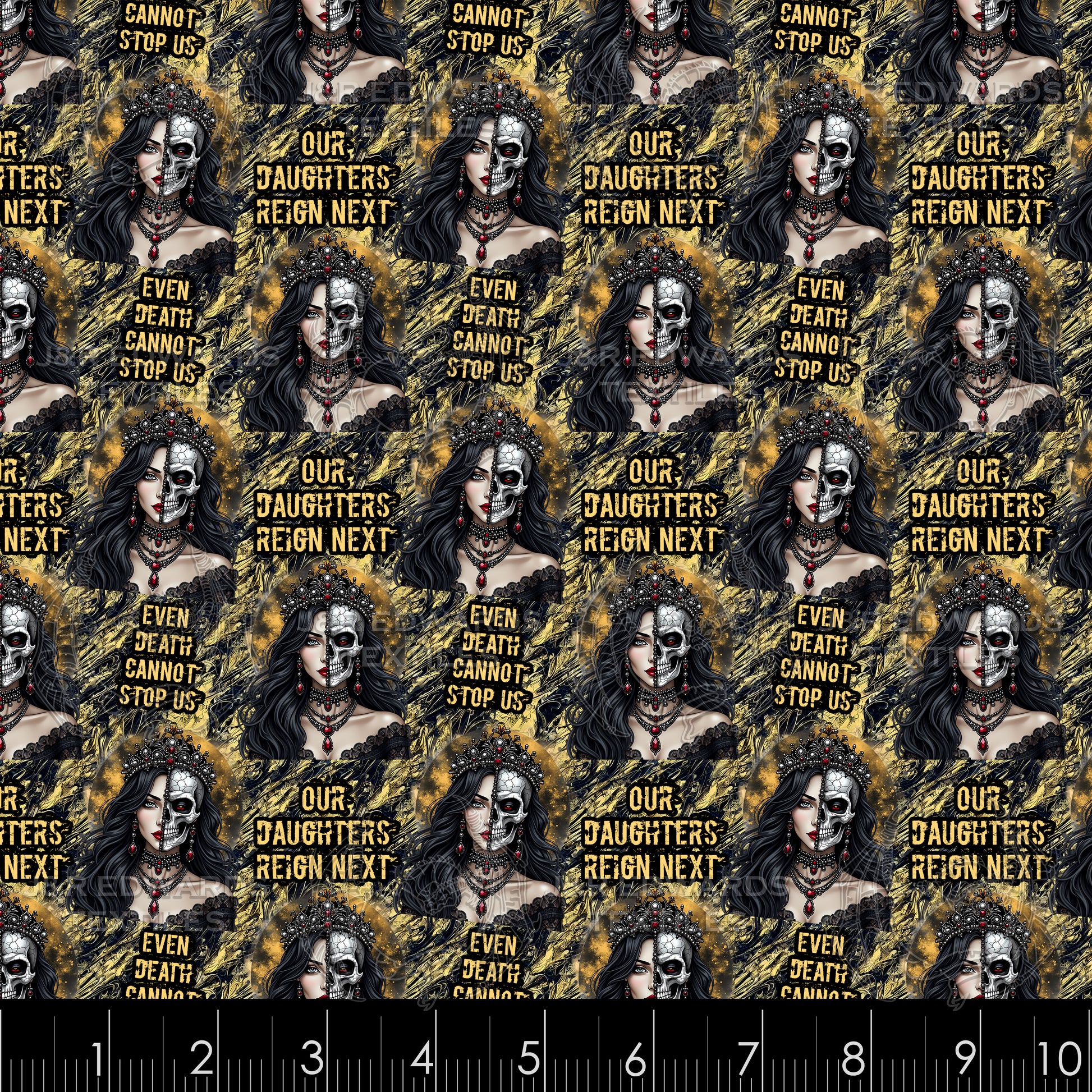 All fabrics are sold by the half yard. Scales are shown in inches. To order 1 full yard, order a quantity of 2. Printed fabric does not include watermark on photo.